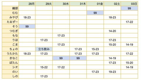 | 営業時間 | 18:00〜 | ||||||||||||||
