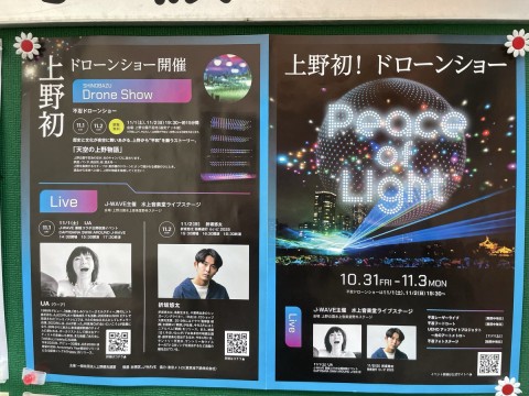 台東区の掲示板に貼ってあったけど、次の土日、気絶からめっちゃ近い水上音楽堂でドローンショーやるらしいよ