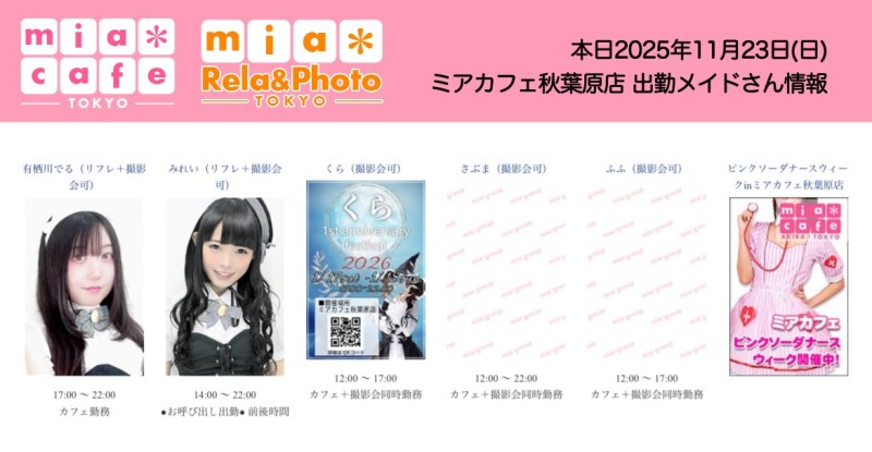 👑本日11月23日(日)のミアカフェ秋葉原店