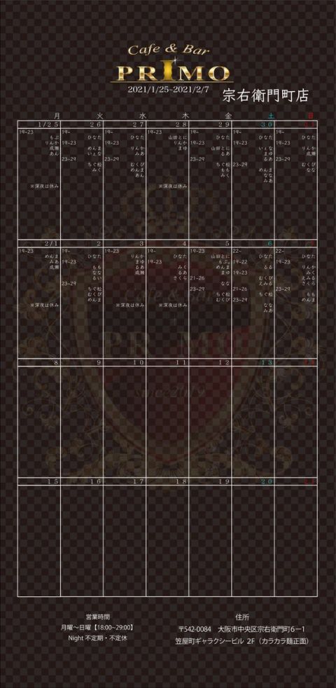 宗右衛門町店シフト