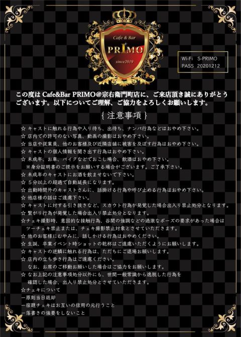 宗右衛門町PRIMO、ミーティングにてルールが改正されたのでご確認よろしくお願いします。またキャストのSNSもお店で管理しているので執拗なDM等は御遠慮ください。今後ともよろしくお願いします。 https://t.co/c20MYECUuG