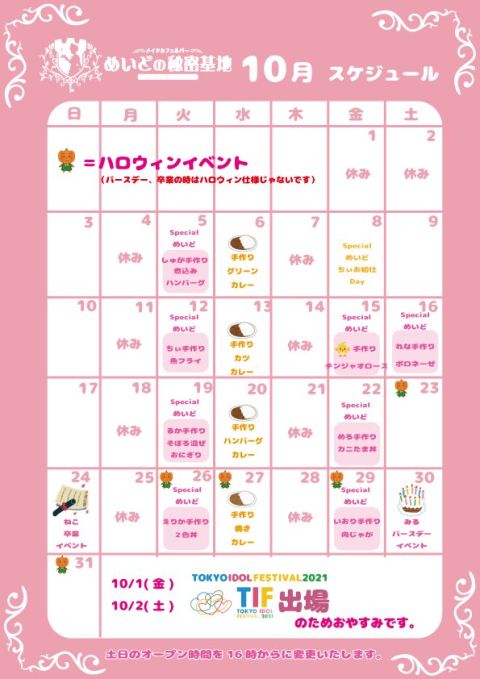 | 営業時間 | *火曜日~金曜日*18:00~23:00 *土曜日、日曜日*16:00~23:00 *月曜日、木曜日*定休日 (イベントなどで営業時間が変わることがあります。) | ||||||||||||||