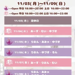 | 営業時間 | *火曜日~金曜日*18:00~23:00 *土曜日、日曜日*16:00~23:00 *月曜日、木曜日*定休日 (イベントなどで営業時間が変わることがあります。) | ||||||||||||||