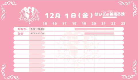 12/1(金)、めいどの秘密基地本日のお給仕メンバーです🎀