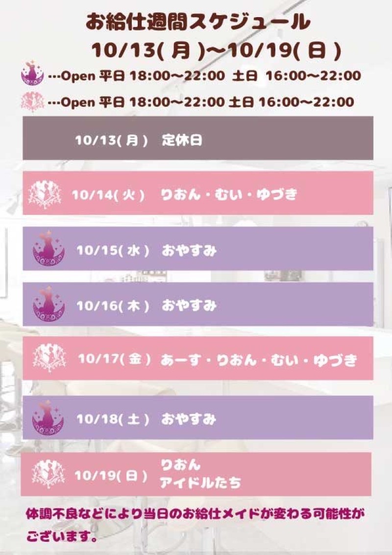 営業時間 | *火曜日~金曜日*18:00~23:00 *土曜日、日曜日*16:00~23:00 *月曜日、木曜日*定休日 (イベントなどで営業時間が変わることがあります。) | ||||||||||||||