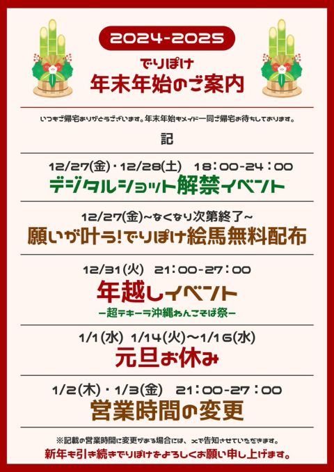 | 営業時間 | 18:00-24:00 | ||||||||||||||