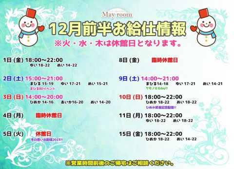 | å¶æ¥æé | æã»æšã»éã16ïŒ00ïœ22ïŒ00 åã»ç¥åæ¥ã13ïŒ00ïœ22ïŒ00 æ¥ã»ç¥æ¥ãã12ïŒ00ïœ21ïŒ00 æ¯é±ç«ã»æ°Žã¯å®äŒæ¥ã§ãã â»åæ¥ãŸã§ã®ãäºçŽããªãæ¥ã¯18ïŒ00ïœ22ïŒ00ãŸã§ã®å¶æ¥ãšãããŠããã ãå ŽåãããããŸãã â»å¶æ¥æéã¯å€æŽãšãªãå ŽåãããããŸãã®ã§ãäºæ¿ãã ãããŸãã | ||||||||||||||