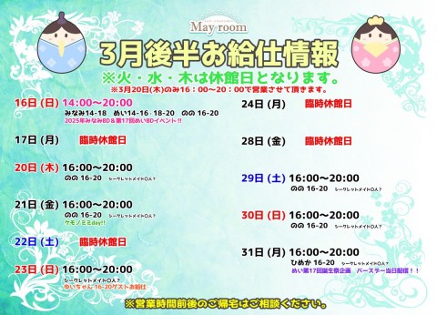ææ¥3/30(æ¥)ã¯ðãã²ãã·ãããããšð16æãã20æãŸã§ð°ïžã®ã®â¡secret maidâ人ïŒ