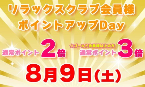 8æååã®ãªã©ãã¯ã¹äŒå¡æ§éåžžãã€ã³ãïŒåã»GOLDäŒå¡æ§ä»¥äžïŒådayã¯8/9(å)ã§ããïž