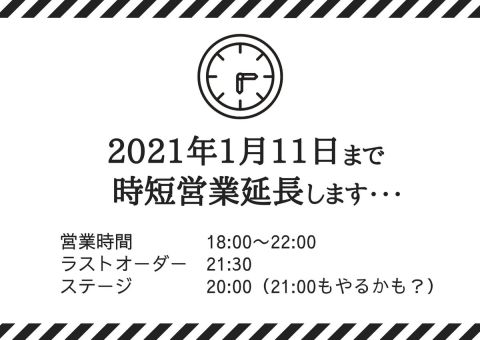 2021年1月11日まで営業時間が