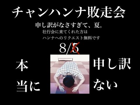 申し訳ありません、台風の影響が思ったよりしぶとく主役の出勤が困難なため、本日のハンナ敗走会は延期となります😢
