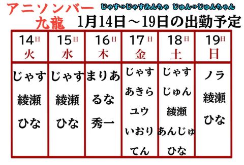 ä»é±ã®åºå€äºå®ãšãªããŸãïŒ