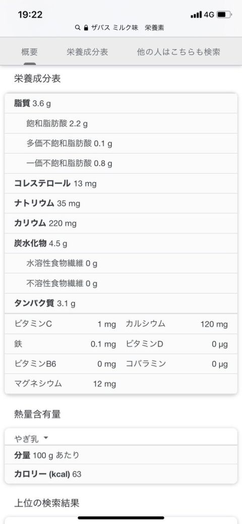 ←牛乳の栄養素/ザバス ミルク味の栄養素→