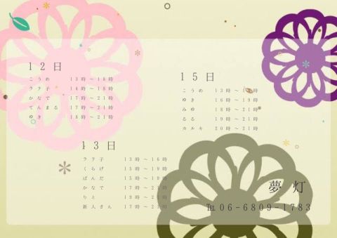 12日から15日までの訂正シフトになります🙇♀️ https://t.co/DPFbqTqqNi