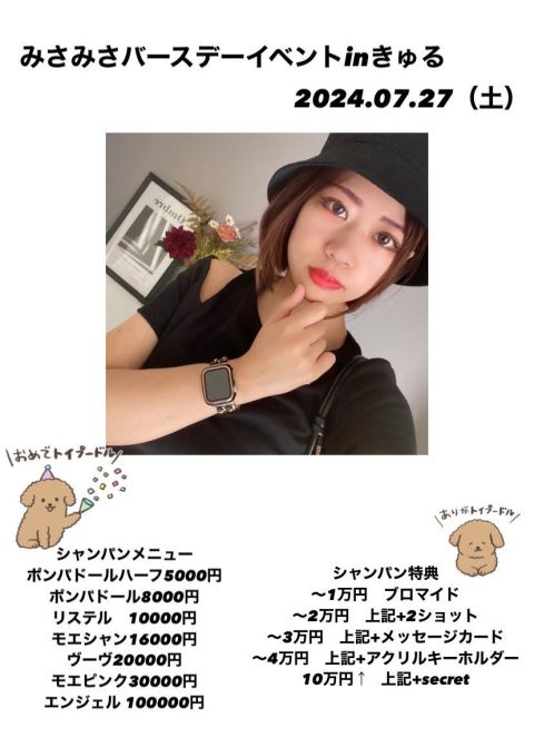 本日27日はゲスト『みさみさ』ちゃんの生誕祭イベントになります✨✨✨