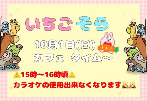 10月1日(日)いちご&そらでカフェタイム入ります🐴🩵🐴🩷🐴