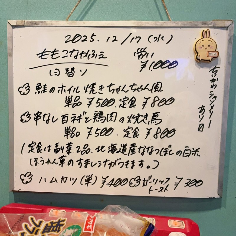 日替わりは骨取り銀鮭のホイル焼き焼きちゃんちゃん風と串なし焼き鳥がございます