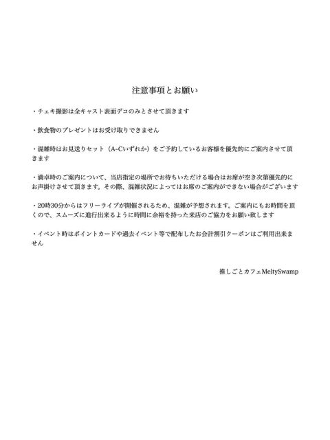 また、イベントをスムーズに進行するために1部オーダー制限を設けさせて頂きます。画像2枚目をご確認下さい