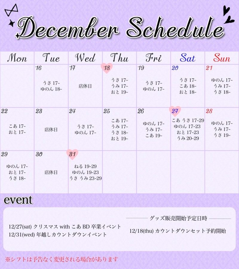 ・クリスマス&こあ生誕・卒業イベントのセット予約はお早めに‼️