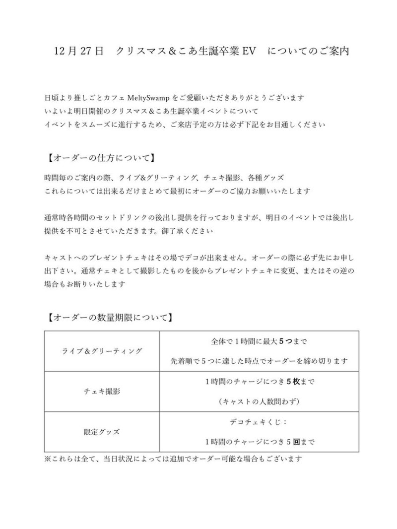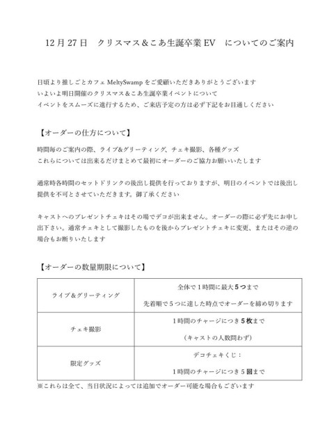 【クリスマス&こあ生誕卒業EVについてのご案内】