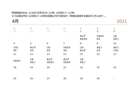 4月前半の出勤予定です。 https://t.co/5Nn2umx0rf