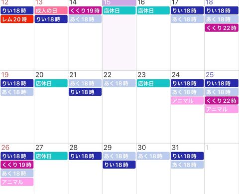 今月後半の出勤予定です。