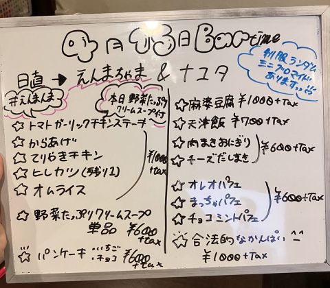 | 営業時間 | カフェタイム11:00〜17:00バータイム17:00〜22:00 | ||||||||||||||
