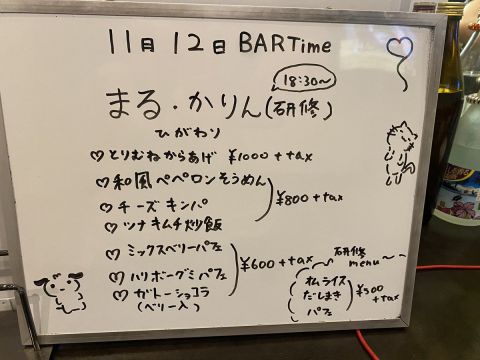 | 営業時間 | カフェタイム11:00〜17:00バータイム17:00〜22:00 | ||||||||||||||
