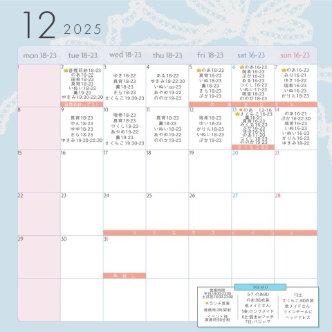 🎀12月前半お給仕予定🎀