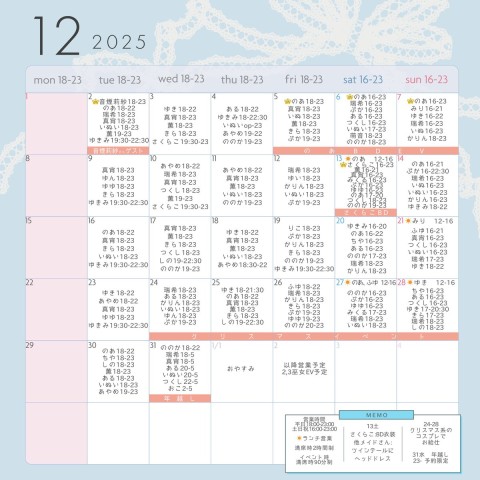| ๅถๆฅญๆ้ | 5ๆ ๅนณๆฅ17:00-22:00๏ผๅนณๆฅๆๆๅฎไผ๏ผ ๅๆฅ็ฅ15:00-22:00 | ||||||||||||||