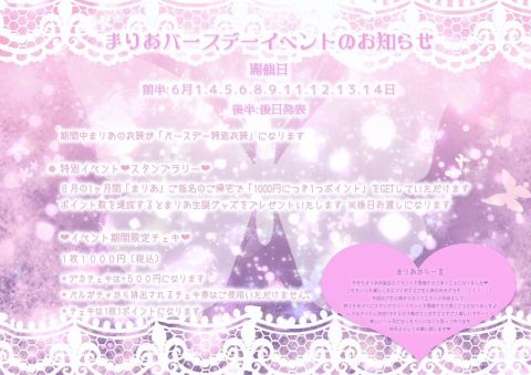 「りりな」「まりあ」のバースデーイベントに加え、「パジャマイベント」も開催中です🎊✨