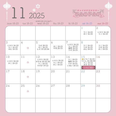| 営業時間 | 【2021年7月2日オープン予定】 月曜18:00〜23:00 金曜23:00〜翌5:00 土曜23:00〜翌5:00 | ||||||||||||||