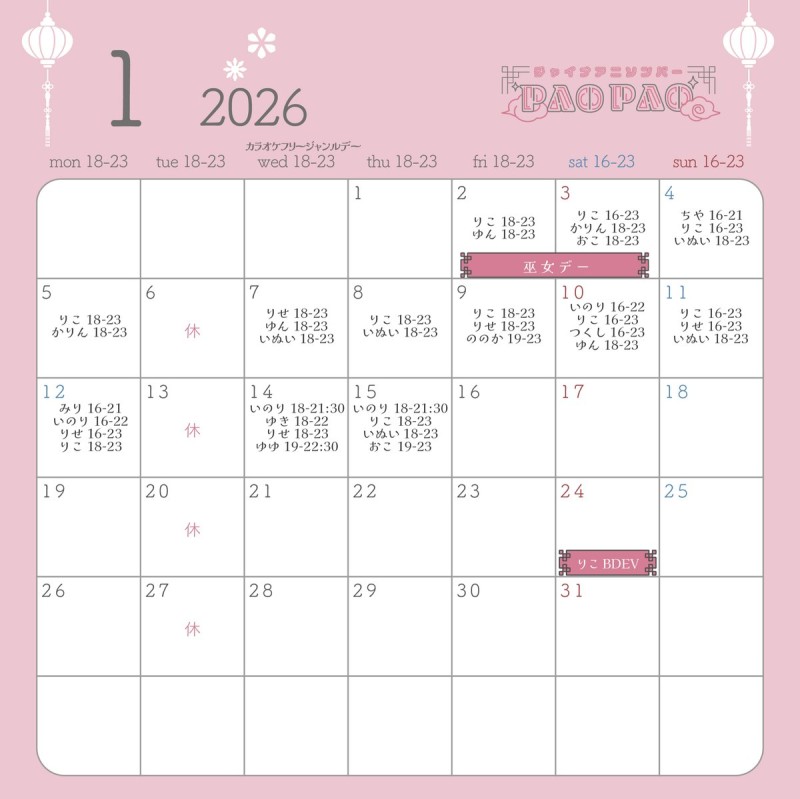 @melfi_maid 🐼1月の予定🐼