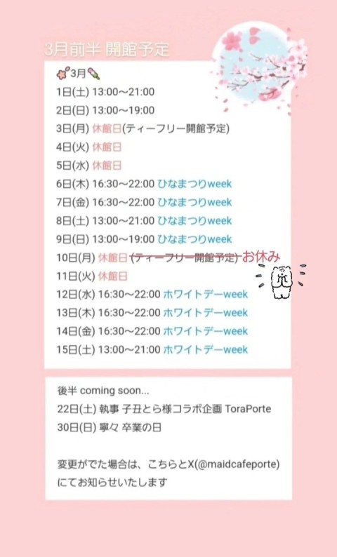 | å¶æ¥æé | æç« äŒé€šæ¥ïŒå¹³æ¥ 15:30ïœ22:00ïŒåæ 13:00ïœ21:00ïŒæ¥æ 13:00ïœ19:00 | ||||||||||||||