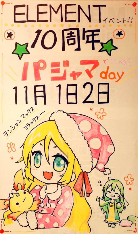 もうすぐハロウィン🎃 ·····ですがELEMENTは11月1日から10周年イベントがはじまるよ♠ パジャマdayでテンションマックス リラックス~( ᵕᴗᵕ )⋆☪︎ https://t.co/6mdPQJn4fh