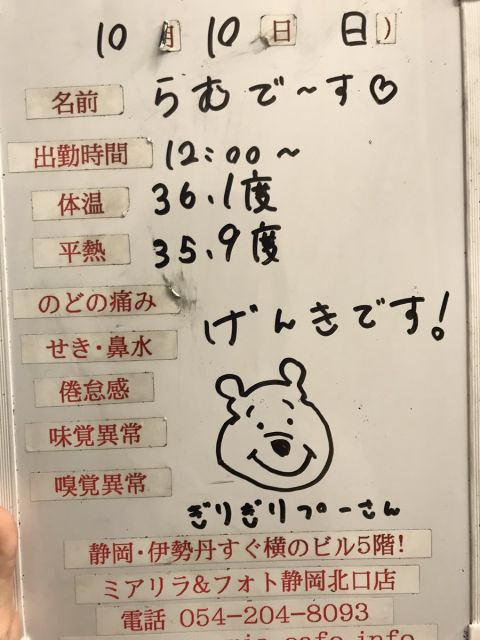 | 営業時間 | 静岡店は出勤スタッフがいれば営業です! 基本的に 12時~22時が営業時間です! ●静岡店のツイッター @shizuokamaidsan https://twitter.com/shizuokamaidsan ●ミア静岡店の営業曜日&営業時間● ☆月〜木 14:00〜22:00(最終受付20:00) ☆金曜日 12:00〜22:00(最終受付21:00) ☆土・日・祝 12:00〜22:00(最終受付21:00) 営業時間外はオンライン予約にてお願いいたします。 PC・携帯共通 → http://m-kanzume.moo.jp/yoyaku2/user.cgi ●ミアガイド出勤状況● スマホ・PC → 後日公開予定 ★静岡店スタッフによるミア甲府店でのメイドカフェリアル営業★ ☆不定期 サイトにてご確認ください。 http://market.chu.jp/schedule1/sche37.cgi | ||||||||||||||