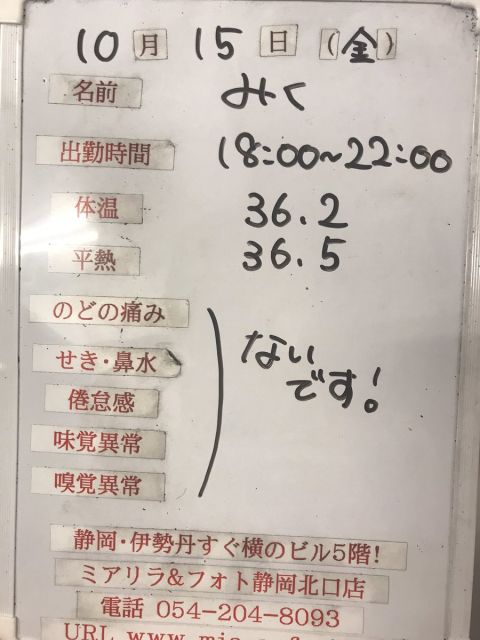 | 営業時間 | 静岡店は出勤スタッフがいれば営業です! 基本的に 12時~22時が営業時間です! ●静岡店のツイッター @shizuokamaidsan https://twitter.com/shizuokamaidsan ●ミア静岡店の営業曜日&営業時間● ☆月〜木 14:00〜22:00(最終受付20:00) ☆金曜日 12:00〜22:00(最終受付21:00) ☆土・日・祝 12:00〜22:00(最終受付21:00) 営業時間外はオンライン予約にてお願いいたします。 PC・携帯共通 → http://m-kanzume.moo.jp/yoyaku2/user.cgi ●ミアガイド出勤状況● スマホ・PC → 後日公開予定 ★静岡店スタッフによるミア甲府店でのメイドカフェリアル営業★ ☆不定期 サイトにてご確認ください。 http://market.chu.jp/schedule1/sche37.cgi | ||||||||||||||