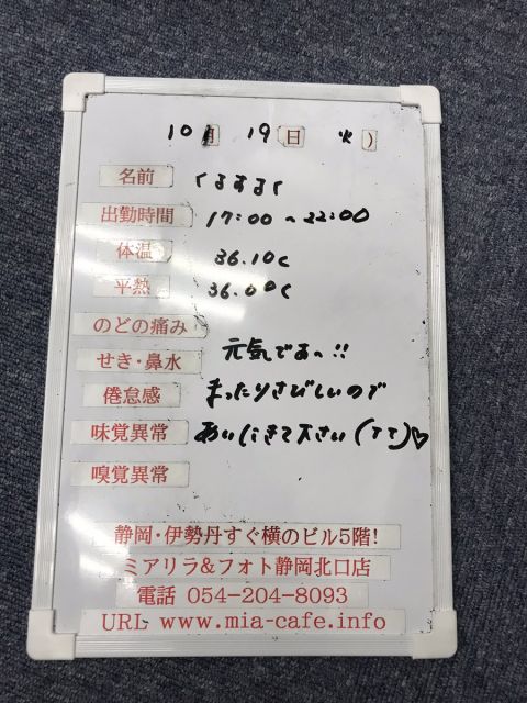 | 営業時間 | 静岡店は出勤スタッフがいれば営業です! 基本的に 12時~22時が営業時間です! ●静岡店のツイッター @shizuokamaidsan https://twitter.com/shizuokamaidsan ●ミア静岡店の営業曜日&営業時間● ☆月〜木 14:00〜22:00(最終受付20:00) ☆金曜日 12:00〜22:00(最終受付21:00) ☆土・日・祝 12:00〜22:00(最終受付21:00) 営業時間外はオンライン予約にてお願いいたします。 PC・携帯共通 → http://m-kanzume.moo.jp/yoyaku2/user.cgi ●ミアガイド出勤状況● スマホ・PC → 後日公開予定 ★静岡店スタッフによるミア甲府店でのメイドカフェリアル営業★ ☆不定期 サイトにてご確認ください。 http://market.chu.jp/schedule1/sche37.cgi | ||||||||||||||