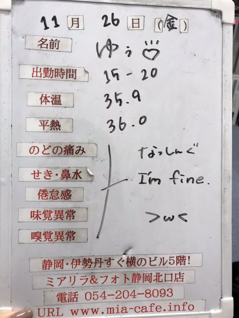 | 営業時間 | 静岡店は出勤スタッフがいれば営業です! 基本的に 12時~22時が営業時間です! ●静岡店のツイッター @shizuokamaidsan https://twitter.com/shizuokamaidsan ●ミア静岡店の営業曜日&営業時間● ☆月〜木 14:00〜22:00(最終受付20:00) ☆金曜日 12:00〜22:00(最終受付21:00) ☆土・日・祝 12:00〜22:00(最終受付21:00) 営業時間外はオンライン予約にてお願いいたします。 PC・携帯共通 → http://m-kanzume.moo.jp/yoyaku2/user.cgi ●ミアガイド出勤状況● スマホ・PC → 後日公開予定 ★静岡店スタッフによるミア甲府店でのメイドカフェリアル営業★ ☆不定期 サイトにてご確認ください。 http://market.chu.jp/schedule1/sche37.cgi | ||||||||||||||