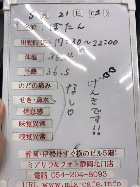 | 営業時間 | 静岡店は出勤スタッフがいれば営業です! 基本的に 12時~22時が営業時間です! ●静岡店のツイッター @shizuokamaidsan https://twitter.com/shizuokamaidsan ●ミア静岡店の営業曜日&営業時間● ☆月〜木 14:00〜22:00(最終受付20:00) ☆金曜日 12:00〜22:00(最終受付21:00) ☆土・日・祝 12:00〜22:00(最終受付21:00) 営業時間外はオンライン予約にてお願いいたします。 PC・携帯共通 → http://m-kanzume.moo.jp/yoyaku2/user.cgi ●ミアガイド出勤状況● スマホ・PC → 後日公開予定 ★静岡店スタッフによるミア甲府店でのメイドカフェリアル営業★ ☆不定期 サイトにてご確認ください。 http://market.chu.jp/schedule1/sche37.cgi | ||||||||||||||
