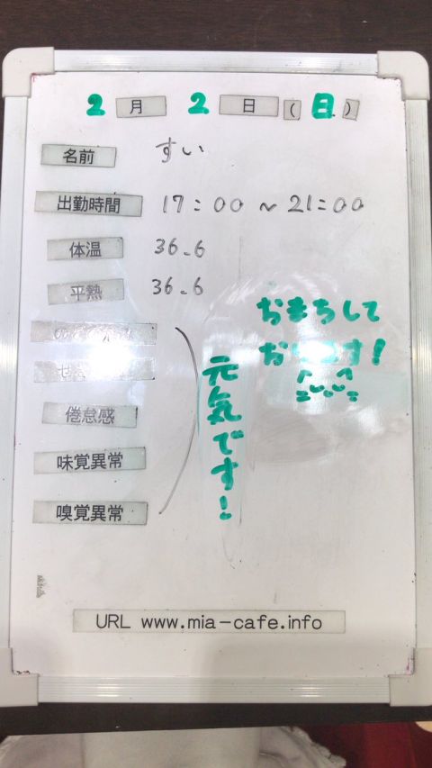 | 営業時間 | 静岡店は出勤スタッフがいれば営業です! 基本的に 12時~22時が営業時間です! ●静岡店のツイッター @shizuokamaidsan https://twitter.com/shizuokamaidsan ●ミア静岡店の営業曜日&営業時間● ☆月〜木 14:00〜22:00(最終受付20:00) ☆金曜日 12:00〜22:00(最終受付21:00) ☆土・日・祝 12:00〜22:00(最終受付21:00) 営業時間外はオンライン予約にてお願いいたします。 PC・携帯共通 → http://m-kanzume.moo.jp/yoyaku2/user.cgi ●ミアガイド出勤状況● スマホ・PC → 後日公開予定 ★静岡店スタッフによるミア甲府店でのメイドカフェリアル営業★ ☆不定期 サイトにてご確認ください。 http://market.chu.jp/schedule1/sche37.cgi | ||||||||||||||