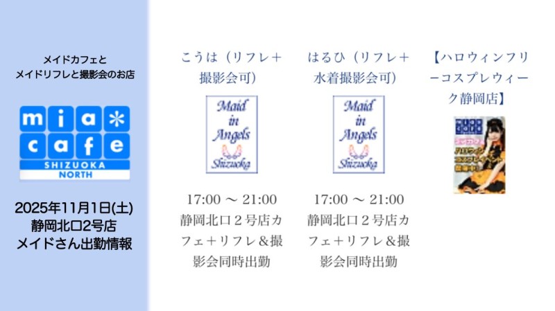 👑本日11月1日(土)のミアカフェ静岡北口2号店