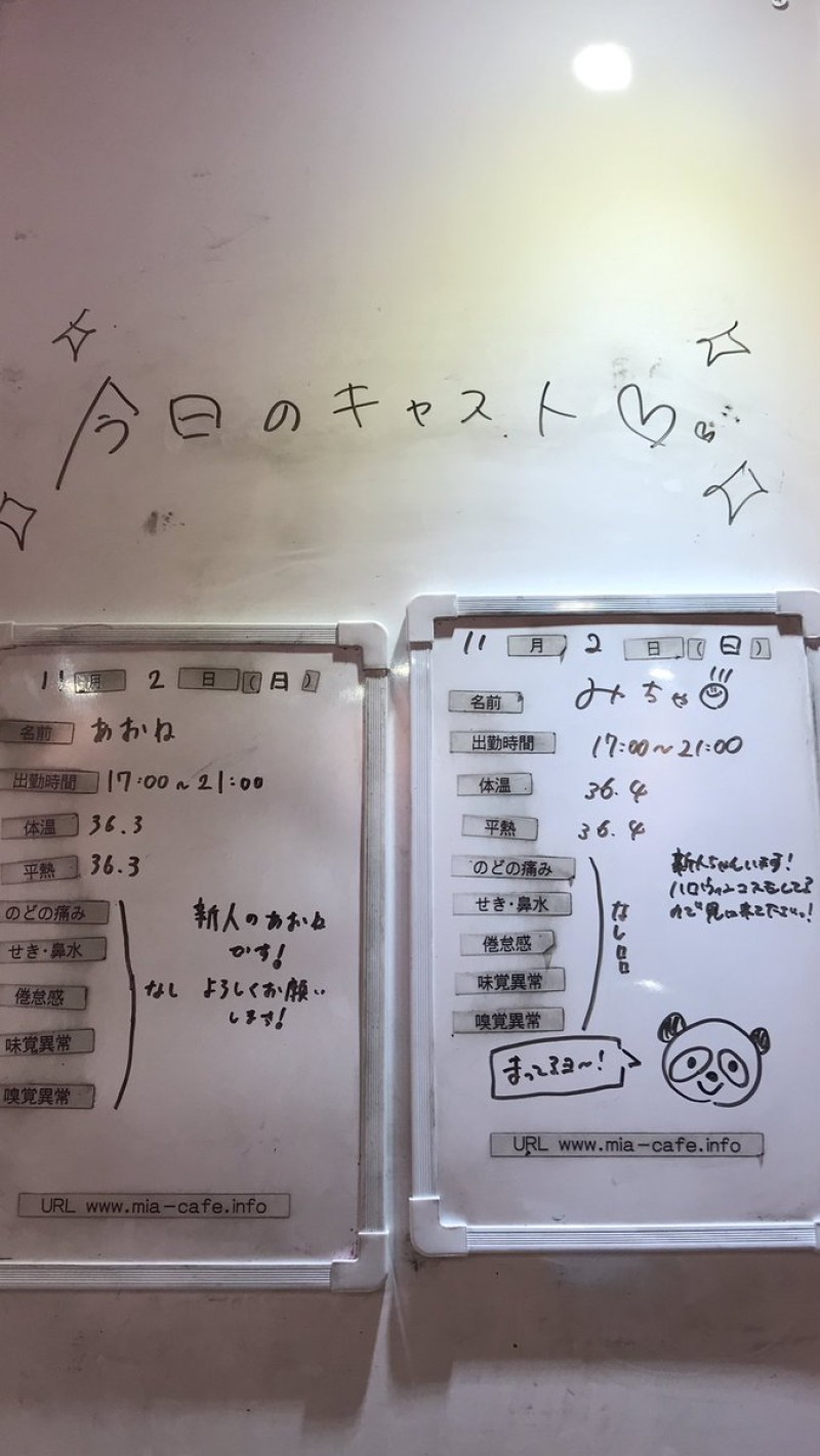 | 営業時間 | 静岡店は出勤スタッフがいれば営業です! 基本的に 12時~22時が営業時間です! ●静岡店のツイッター @shizuokamaidsan https://twitter.com/shizuokamaidsan ●ミア静岡店の営業曜日&営業時間● ☆月〜木 14:00〜22:00(最終受付20:00) ☆金曜日 12:00〜22:00(最終受付21:00) ☆土・日・祝 12:00〜22:00(最終受付21:00) 営業時間外はオンライン予約にてお願いいたします。 PC・携帯共通 → http://m-kanzume.moo.jp/yoyaku2/user.cgi ●ミアガイド出勤状況● スマホ・PC → 後日公開予定 ★静岡店スタッフによるミア甲府店でのメイドカフェリアル営業★ ☆不定期 サイトにてご確認ください。 http://market.chu.jp/schedule1/sche37.cgi | ||||||||||||||