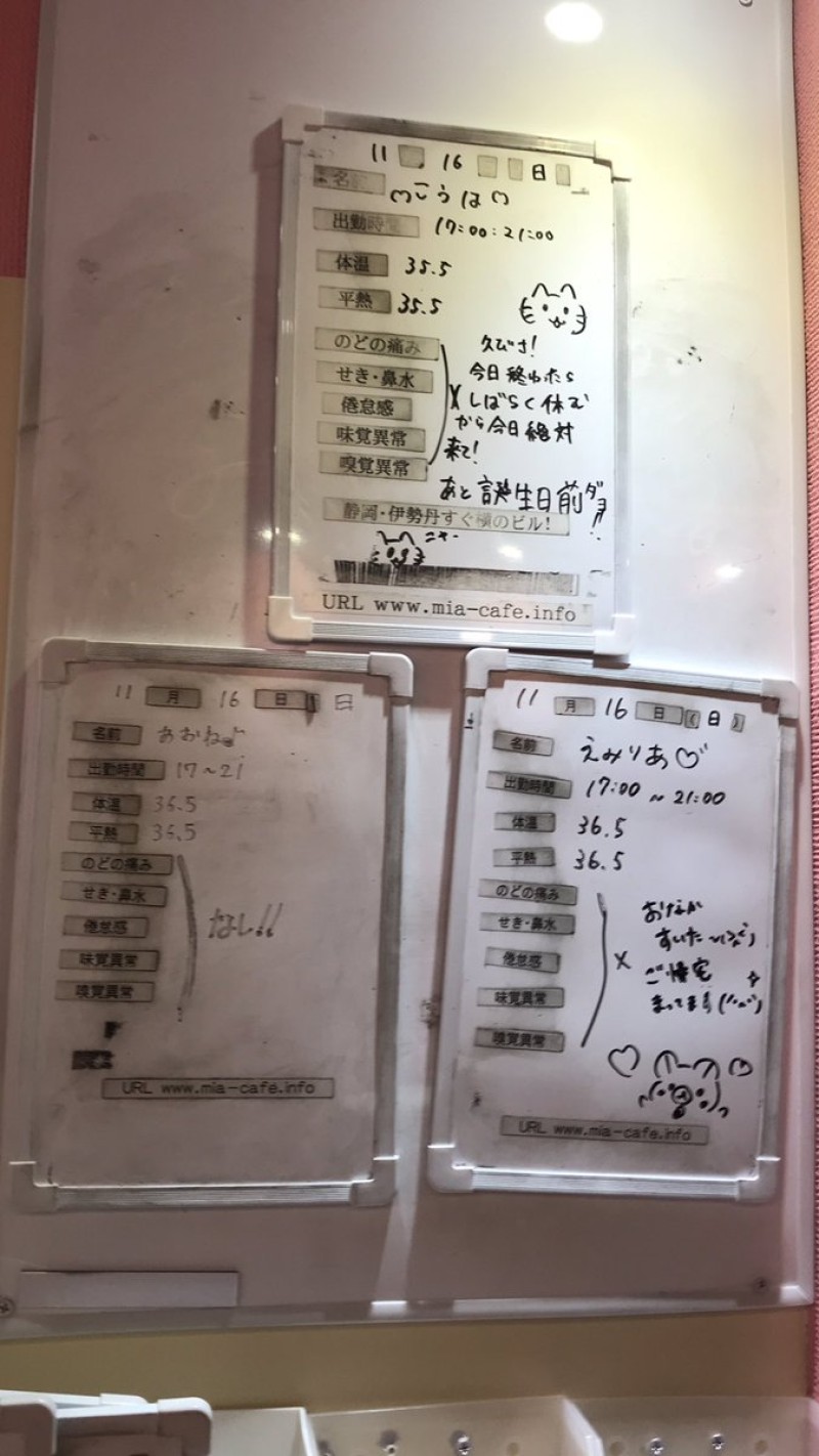 | 営業時間 | 静岡店は出勤スタッフがいれば営業です! 基本的に 12時~22時が営業時間です! ●静岡店のツイッター @shizuokamaidsan https://twitter.com/shizuokamaidsan ●ミア静岡店の営業曜日&営業時間● ☆月〜木 14:00〜22:00(最終受付20:00) ☆金曜日 12:00〜22:00(最終受付21:00) ☆土・日・祝 12:00〜22:00(最終受付21:00) 営業時間外はオンライン予約にてお願いいたします。 PC・携帯共通 → http://m-kanzume.moo.jp/yoyaku2/user.cgi ●ミアガイド出勤状況● スマホ・PC → 後日公開予定 ★静岡店スタッフによるミア甲府店でのメイドカフェリアル営業★ ☆不定期 サイトにてご確認ください。 http://market.chu.jp/schedule1/sche37.cgi | ||||||||||||||